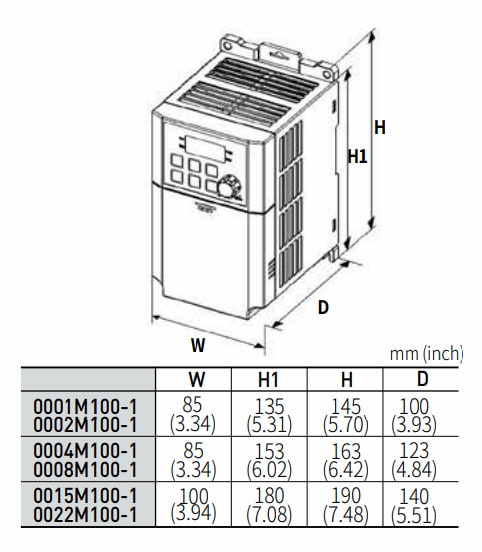 - Thích hợp cho động cơ 1P, 3P với điện áp 240VAC