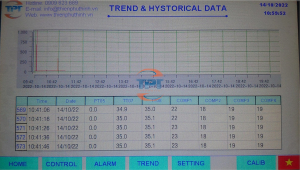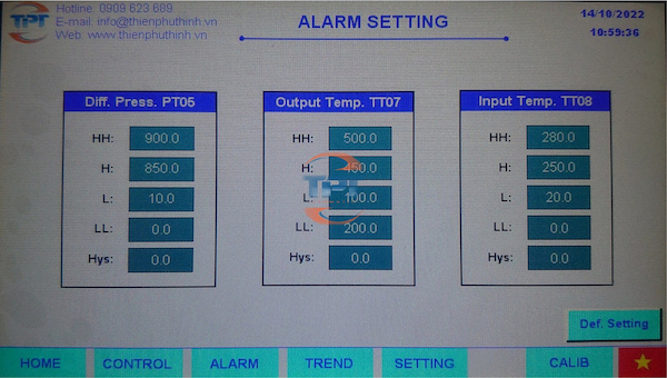 - Các tín hiệu nhiệt độ, chênh áp suất sẽ được truyền về PLC