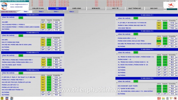 - Điều khiển cấp nguồn cho tất cả các FCU của bệnh viện (phòng mổ, phòng họp, phòng bệnh nhân...)