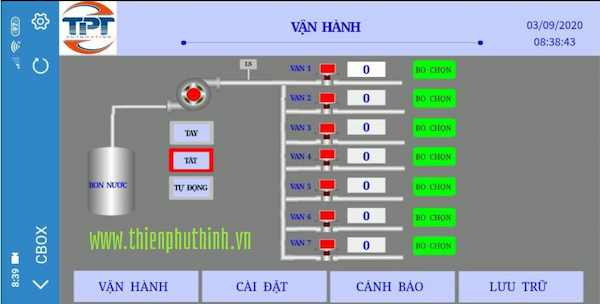 Tủ điện và giao diện điều khiển tưới nước tự động: