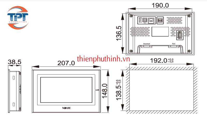 3. Kích thước màn hình HMI Touchwin Xinje TG765-UT