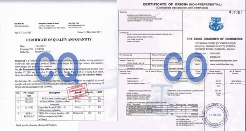 CO (Certificate of Origin): Giấy chứng nhận xuất xứ.