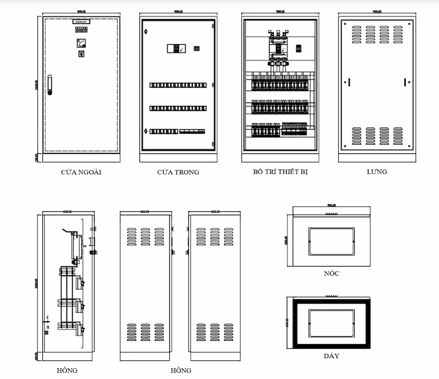 Một bộ thiết kế tủ điện đầy đủ gồm:
