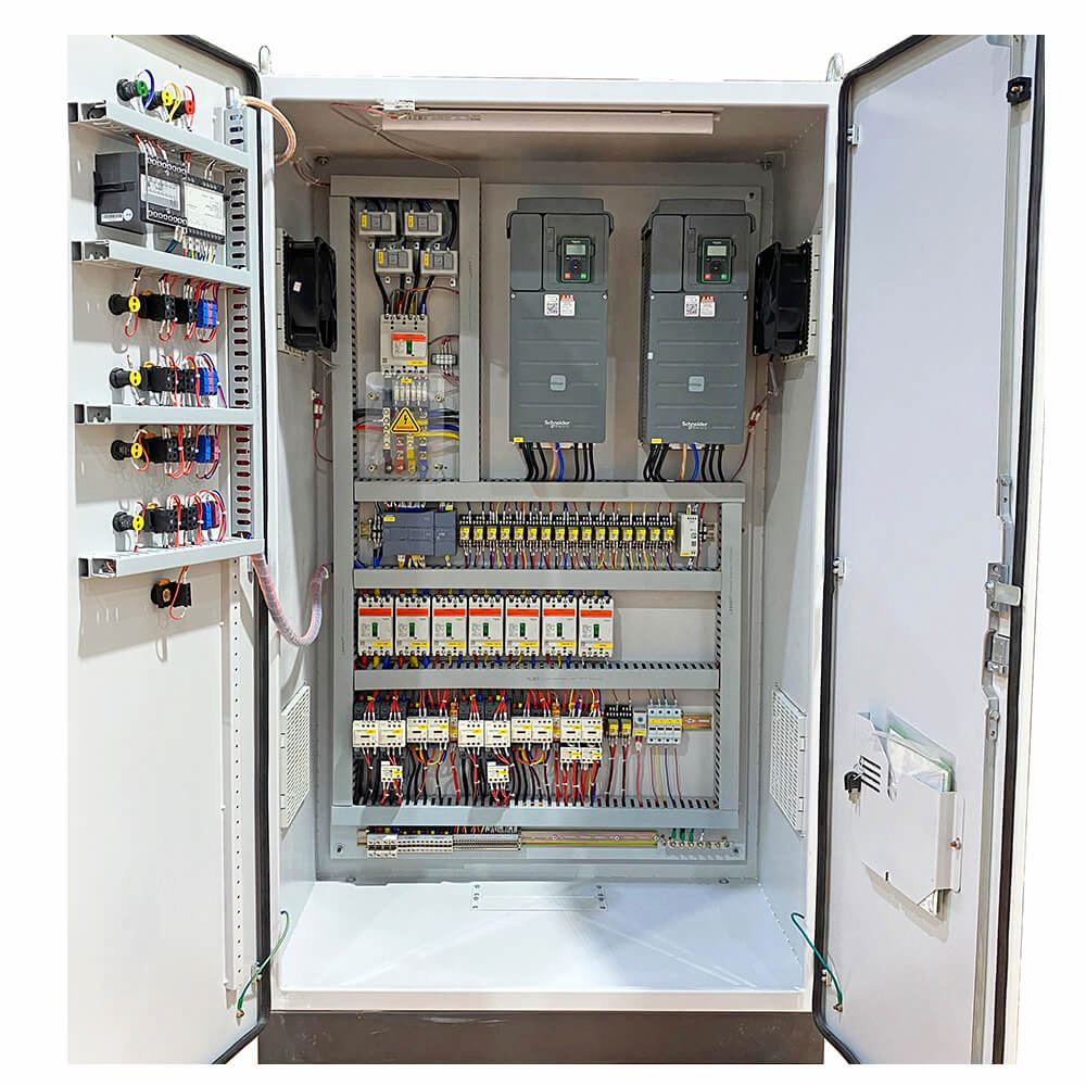 Tủ điều khiển được lắp ráp từ các thiết bị điện chất lượng, đảm bảo khả năng bảo vệ động cơ và vận hành ổn định trong thời gian dài. -
