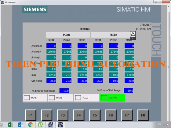 - Màn hình HMI hiển thị và giám sát các giá trị tín hiệu